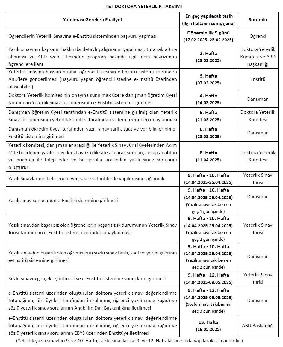2024-2025 BAHAR DÖNEMİ DOKTORA YETERLİK SINAVI BAŞVURUSU YAPACAK ÖĞRENCİLERİN DİKKATİNE