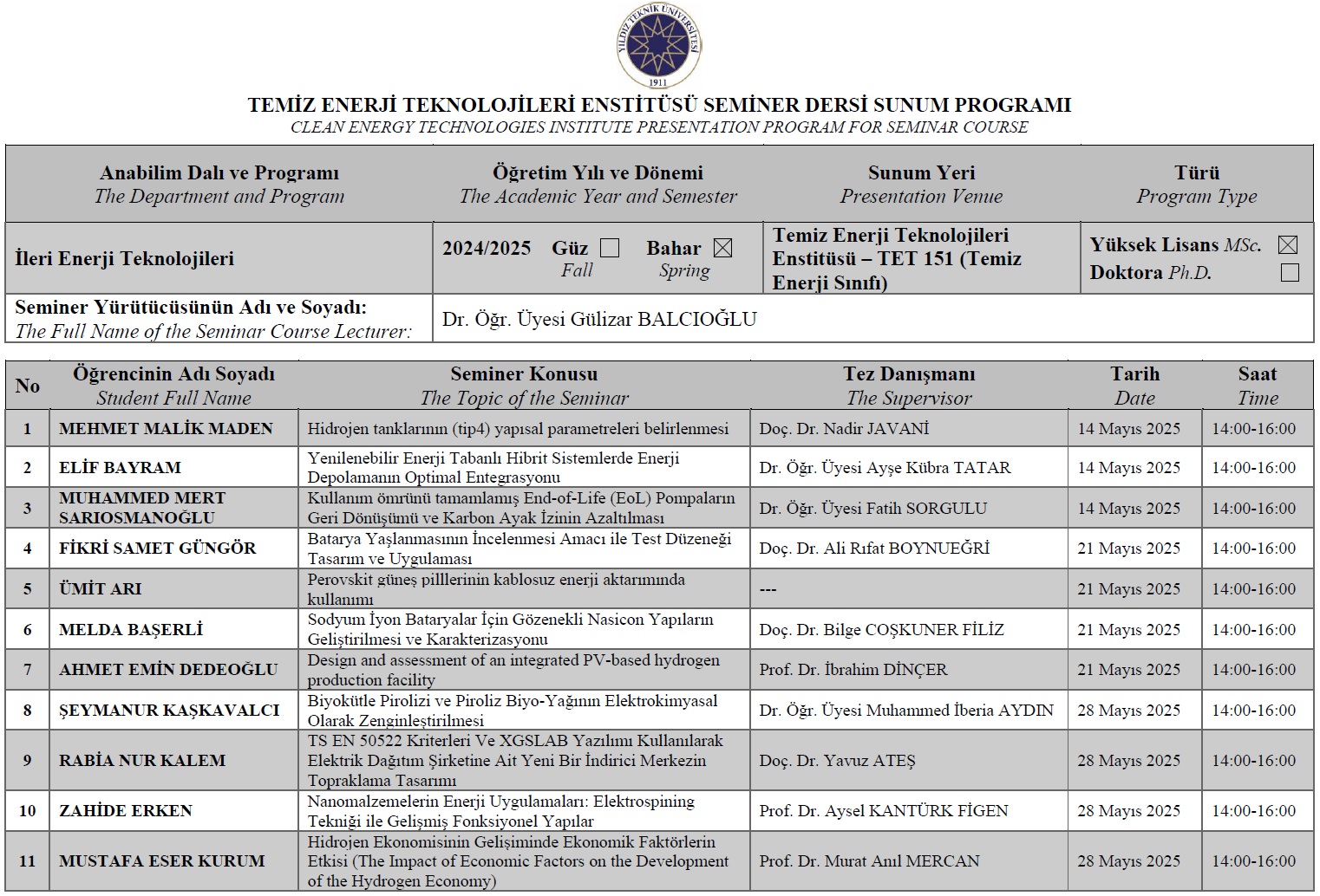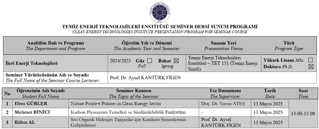 TET Seminer Dersi Sunumları Hk.